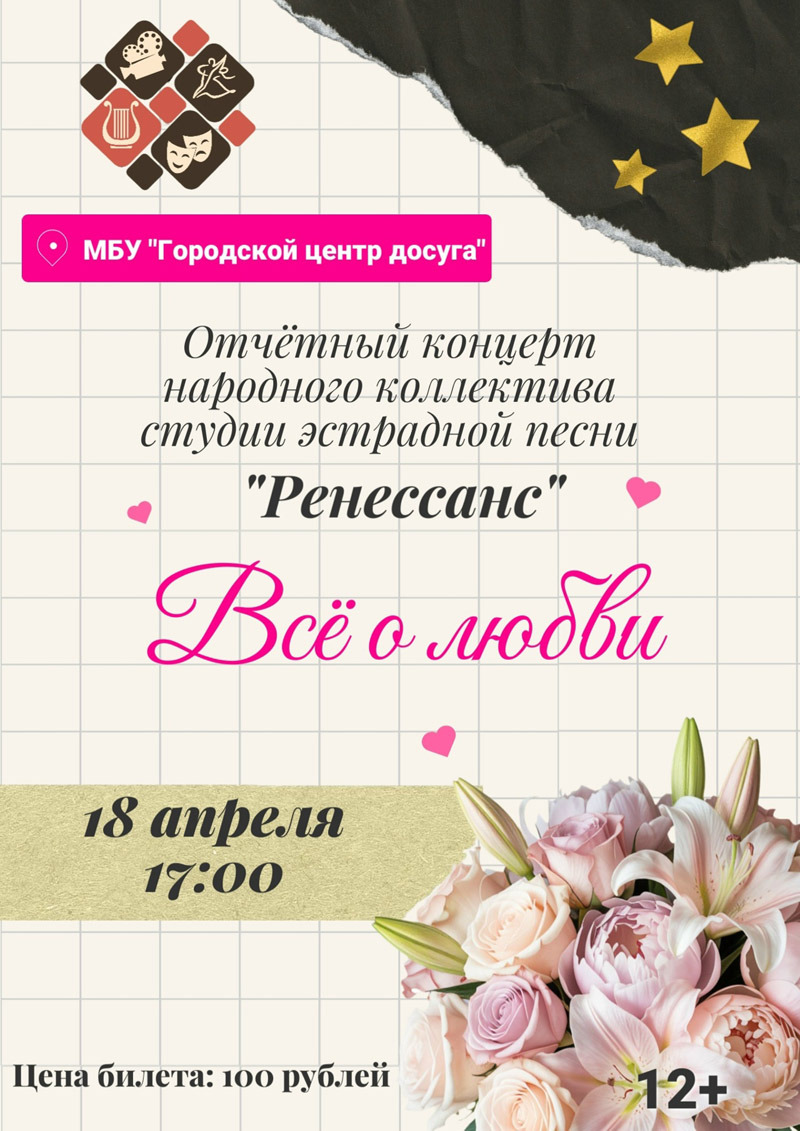 9 апреля, 2026Отчётный концерт народного коллектива студии эстрадной песни "Ренессанс"