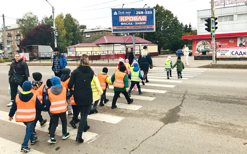 Инспектор по пропаганде БДД ОГИБДД МО МВД России «Рославльский» организовала для воспитанников старшей и подготовительной групп детского сада «Аистенок» г. Рославля пешеходную экскурсию. В начале встречи сотрудник Госавтоинспекции повторила с ребятами правила безопасного перехода проезжей части и пояснила, что они будут двигаться «организованной пешей группой детей», в связи с чем, необходимо быть еще более внимательными. Затем совместно с воспитателями провели инструктаж по безопасному перемещению вблизи дошкольного учреждения. Экскурсия началась от здания детского сада. После инструктажа дошколята совместно с инспектором по пропаганде БДД и воспитателями выдвинулись к ближайшим пешеходным переходам. Маршрут включал в себя правила поведения перед началом перехода проезжей части по пешеходному переходу, «дорожные ловушки», которые могут подстерегать на проезжей части, а также значения встречающихся на пути дорожных знаков. Дойдя до нерегулируемого пешеходного перехода, ребята под руководством сотрудника ГИБДД внимательно посмотрели по сторонам и, убедившись, что транспортные средства полностью остановились, продолжили движение. На обратном пути, дети вели себя более уверенно и делились своими знаниями Правил дорожного движения. Кто-то вспомнил про правила для велосипедистов, кто-то про запрет игр на проезжей части. Проведение таких практических занятий дает положительный результат. Дети не только получают теоретическую информацию, но и применяют ее на практике, тем самым формируется модель правильного безопасного поведения на дороге.