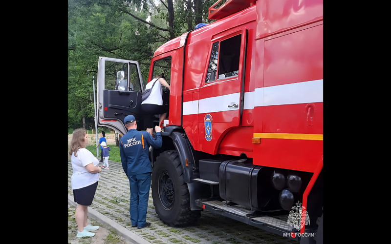 Начало лета для маленьких десногорцев началось с ярких впечатлений. Вместе с сотрудниками СПСЧ №1 ФГКУ "Специальное управление ФПС №72 МЧС России" ребята изучили техническое оснащение пожарных автомобилей, почувствовали себя настоящими пожарными, переодевшись в их боевую одежду, и даже метко потушили условный пожар на газоне АтомПарка! Младший инструктор Общероссийской общественной организации "Красный Крест" Екатерина Кузнецова (инспектор ГПП СПСЧ №1) вместе с куклой Коленькой рассказала детям и их родителям об оказании первой помощи при определённых ситуациях, которые, к сожалению, случаются с каждым: травма, ожог, укус насекомых и тд. Также детям были розданы памятки-буклеты о требованиях пожарной безопасности и сладости - праздник же!