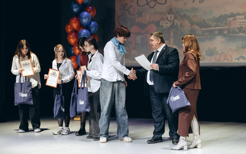 Масштабное праздничное мероприятие, прошедшее в Городском центре досуга, объединило учащихся школ, воспитанников детских садов, педагогов, родителей — всех жителей Десногорска, вовлеченных в большой отраслевой школьный проект. Ярким подарком к 15-летнему юбилею стали «живые открытки» от юных талантов, которые развиваются благодаря проекту при поддержке Смоленской АЭС и города. «Дорогие школьники Росатома, наш проект развивается и объединяет уже 31 атомный город. Вы - наше будущее, и завтрашний день Десногорска и Смоленской атомной станции - в ваших руках. Мы видим, как вы учитесь, стараетесь и добиваетесь успехов, и это вызывает искреннюю радость. Нам с вами предстоит заботиться о том, чтобы наш красивый город становился еще лучше, и построить следующую атомную станцию, которая будет вырабатывать электроэнергию для нашего региона и всей страны», - приветствовал юных десногорцев директор Смоленской АЭС Иван Сидоров. Исполняющая обязанности главы Десногорска Злата Бриллиантова отметила, что за годы существования проекта десногорские дети проявили незаурядное мастерство в самых разных направлениях. «Все эти 15 лет мы убеждаемся в том, какие же у нас замечательные, талантливые дети. Я думаю, что мы на этом не остановимся, будем двигаться дальше, и вы будете также ярко раскрываться и показывать свои знания и способности», – подчеркнула она. Центральным событием праздника стала торжественная церемония награждения. Директор Смоленской АЭС Иван Сидоров и и.о. главы города Злата Бриллиантова вручили почетные грамоты и благодарственные письма самым активным участникам проекта «Школа Росатома». За проявленный интерес к науке, инициативность и стремление к знаниям были отмечены 16 школьников из всех учебных заведений города. За высокий профессионализм, творческий подход и значительный вклад в развитие подрастающего поколения награды получили 11 педагогов и методистов. Особое внимание уделили спортивным достижениям – благодарственными письмами отметили учителей физкультуры за организацию городского турнира по баскетболу. Не остались без внимания и участники юбилейной метапредметной олимпиады: Смоленская АЭС приготовила для каждой команды сладкие призы, а все участники получили оранжевые апельсины – яркий символ проекта. Кульминацией торжества стал фестиваль «Живая открытка». Школы и детские сады Десногорска подготовили творческие подарки-поздравления: вокально-хореографические номера, флешмобы, трогательные песни о дружбе. Сцена превратилась в калейдоскоп талантов, еще раз доказав, что «Школа Росатома» – это пространство, где рождаются звезды. В завершение праздника состоялась церемония награждения победителей и призеров муниципального этапа Всероссийской олимпиады школьников. Справочно: Проект «Школа Росатома» реализуется в 31 городе России, а также в Армении и Беларуси, охватывая более 200000 учеников. Проект направлен на выявление и поддержку одаренных детей, внедрение инновационных методик обучения и повышение квалификации педагогов. В Десногорске при поддержке Смоленской АЭС успешно функционируют два «Атомкласса» на базе школ №1 и №3. Госкорпорация «Росатом» активно поддерживает талантливых жителей и молодежь из городов присутствия «Росатом», создает условия для раскрытия творческого потенциала. Еще о