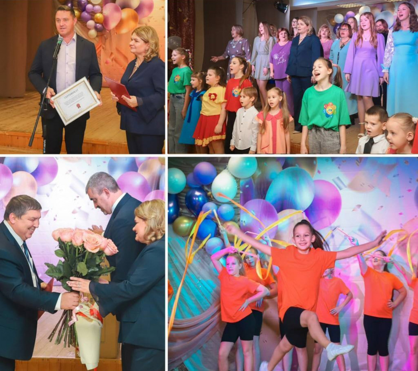 История Дома детского творчества — пример лучшего, чем может гордиться система дополнительного образования. В разные годы учреждение оставалось верным своей миссии — развитию творческих способностей подрастающего поколения, реализации социальных инициатив и активному участию в культурной жизни города Десногорска. На торжественном мероприятии, посвященном славному юбилею, присутствовали почётные гости: Глава муниципального образования «Город Десногорск» Смоленской области Анатолий Александрович Терлецкий Заместитель Генерального директора, директор филиала АО «Концерн Росэнергоатом» «Смоленская атомная станция Иван Иванович Сидоров Председатель первичной профсоюзной организации Смоленской атомной станции, руководитель Общественной приемной Госкорпорации «Росатом» в городе Десногорске Игорь Михайлович Хомяков Депутат Десногорского городского Совета, директор муниципального бюджетного учреждения «Служба благоустройства» Андрей Николаевич Алейников Разделить с нами радость праздника пришли: Председатель Десногорской городской организации Смоленской областной общественной организации «Всероссийское общество инвалидов» Татьяна Георгиевна Желтышова Ветеран педагогического труда- Нина Васильевна Попова Директор Десногорской художественной школы Раиса Ивановна Широкова Заместитель директора Десногорской библиотеки Татьяна Евгеньевна Лебедева В праздничный день поздравить коллектив Дома творчества с юбилеем пришла первый директор, Светлана Павловна Терехова. К празднованию присоединились педагоги, отдавшие многие годы работе в ДДТ. Работа наших педагогов была помечена Почетными грамотами Главы муниципального образования «Город Десногорск» Смоленской области, Управления образования. В течение всего торжества, сменяя друг друга, представили своё творчество ребята из творческих объединений "Веснянка", "Забава", "Айседора", "Веснушки". Порадовали всех вокальные выступления, танцевальные номера юных дарований. Наш праздник состоялся! Мы подвели итог работы за четыре десятилетия и уверенно вступили в пятое. Как сказала директор Дома творчества Елена Юрьевна Долженко, прекрасно осознавать, что есть такое место, где творчество может поселиться в каждом уголке. Где талант и стремление, танец и вдохновение, музыка и радость идут рука об руку. И такое место - наш любимый Дом детского творчества.