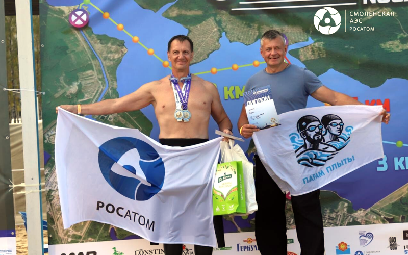 В Десногорске прошли масштабные соревнования по плаванию на открытой воде «X-Waters nuclear». В заплыве, который состоялся при поддержке Первичной профсоюзной организации атомной станции, администрации САЭС и города Десногорска, приняли участие 820 спортсменов разных возрастов и квалификаций. Самому младшему пловцу исполнилось 8 лет, старшему - 66. Среди многочисленных участников 14 - десногорцы: работники Смоленской АЭС и подрядных организаций. «Этот заплыв - уникальный. Ведь в нашем небольшом городе собралось более 800 пловцов. По количеству участников, этап, который сегодня проходит в Десногорске, обошел даже нашу северную столицу! - отметил председатель первичной профсоюзной организации и участник заплыва на дистанции «Атомная миля» Игорь Хомяков. - Подросла в этом году и команда атомграда - в заплыве участвует уже 14 десногорцев, в их числе - работники Смоленской АЭС. Атомщики выбрали разные дистанции: 3 и 5 километров, милю. Я уверен, наша команда будет расти из года в год!» В этом сезоне организаторы мероприятия приготовили для спортсменов из 32 регионов России, а также Беларуси и Узбекистана новую дистанцию - 500 метров. Помимо новинки, участники могли выбрать дистанции длиною в 1, 3, 5 и 10 километров. Для юных участников был приготовлен заплыв на 200 метров. Самой массовой и востребованной оказалась дистанция в 1 милю, ее организаторы прозвали «атомная миля». Ее преодолеть решились 250 человек. Примечательно, что первое место на этой дистанции в возрастной категории от 30 до 39 лет занял инженер цеха по хранению и обращению с отработавшим ядерных топливом Дмитрий Хомяков. Милю он преодолел за 23 минуты и 12 секунд. «Наше водохранилище - клад для любителей плавания на открытой воде! Тренировки здесь могут проходить круглогодично, ведь чистейшая вода остается теплой в любой сезон, - поделился Дмитрий Хомяков. - Атомное море - идеально место и для других видов спорта. Посмотрите, сколько у нас проводится спортивных соревнований на воде, помимо заплывов: регаты, заезды на лодках «Дракон», на SUP-бордах». Накануне заплыва в Десногорске прошла встреча с многократным призёром чемпионатов мира и Европы, чемпионатов и кубка России, обладателем мировых рекордов - Николаем Скворцовым. На ней Николай поделился с десногорцами и участниками заплыва своим спортивным опытом, ответил на вопросы о тренировках и мотивации. «Я впервые в Десногорске и, честно говоря, впечатлён водохранилищем. Какие же у вас здесь восхитительно красивые места! Думаю, что вернусь к вам в следующем году, но уже в качестве неофициального гостя», - поделился заслуженный мастер спорта России, чемпион мира европы, самый возрастной чемпион России Николай Скворцов.