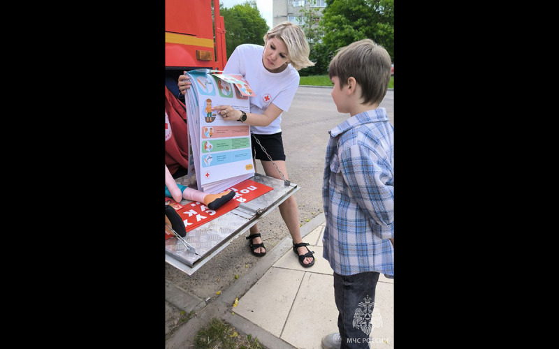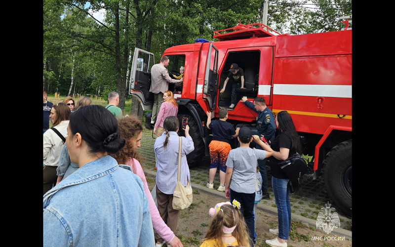 Начало лета для маленьких десногорцев началось с ярких впечатлений. Вместе с сотрудниками СПСЧ №1 ФГКУ "Специальное управление ФПС №72 МЧС России" ребята изучили техническое оснащение пожарных автомобилей, почувствовали себя настоящими пожарными, переодевшись в их боевую одежду, и даже метко потушили условный пожар на газоне АтомПарка! Младший инструктор Общероссийской общественной организации "Красный Крест" Екатерина Кузнецова (инспектор ГПП СПСЧ №1) вместе с куклой Коленькой рассказала детям и их родителям об оказании первой помощи при определённых ситуациях, которые, к сожалению, случаются с каждым: травма, ожог, укус насекомых и тд. Также детям были розданы памятки-буклеты о требованиях пожарной безопасности и сладости - праздник же!