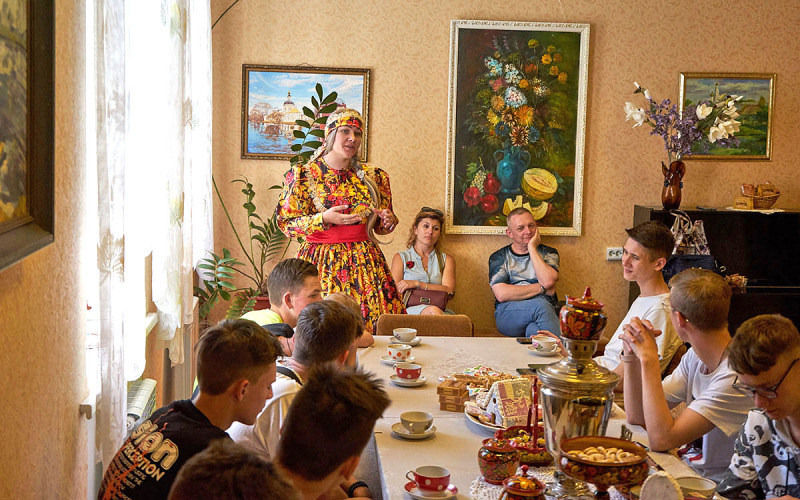 Нас часто спрашивают: что такое историко-патриотический туризм? Что такое событийный туризм? Официальные формулировки гласят, что это поездки на патриотические мероприятия с полным набором туристских услуг. В начале июля 2022 года туристская сфера Вяземского района прошла своеобразный тренинг по организации и приёму групп именно в таких видах туризма. 1 - 3 июля город Вязьму посетила группа кадетов из Санкт-Петербургского Нахимовского училища. Свою поездку нахимовцы приурочили к 220-летию великого флотоводца, уроженца села Городок Вяземского уезда П.С. Нахимова. Это уже второй их визит. В 2021 году ребята побывали в Вязьме в рамках патриотического тура. Знакомство с историей города, посещение музеев Вязьмы, знакомство со своими сверстниками, завязали тесные контакты между руководством училища и Администрацией Вяземского района, и музеем-заповедником «Хмелита». В итоге появилась идея организации «Нахимовского бала» с участием кадетов из Санкт-Петербурга и юных вязьмичей в программе Всероссийского Нахимовского праздника. Подготовка длилась целый год. Юноши из Нахимовского училища и девушки из коллектива «Восходящие звёзды» ДК «Центральный» г. Вязьмы по видеосвязи разучивали танцы эпохи Нахимова, особенности этикета и проведения балов в середине XIX века. И вот наконец это свершилось. Два дня интенсивных сводных репетиций, работа с московским режиссёром И. Фадеевым по включению эпизода «Нахимовский бал» в общую программу праздника, а также по участию юношей и девушек в музыкальном перфомансе «Виват, Нахимов!», который исполнили солисты Москонцерта А. Гладков и Е. Суханова дали потрясающий результат. В едином многогранном полотне Нахимовского праздника прозвучала и юная искренняя нота, и профессиональный аккорд в честь П.С. Нахимова. Зрители по достоинству оценили и замысел, и воплощение! Овации и крики «Браво» были наградой исполнителям! Открыли праздник директор музея-заповедника Кулакова Н.В. и заместитель Главы Вяземского района Вавилова С.Б. Нахимовцы провели на Вяземской земле три незабываемых дня. Для них была организована насыщенная программа с посещением Спасской башни, музея Нахимова и музея «Богородицкое поле», Литературного салона с дегустацией Вяземского пряника и захватывающей экскурсией после которой песня Д. Корнеевой о Нахимове будет теперь звучать и в стенах училища, а также мастер-классом по акварели в стенах Детской художественной школы. Особый восторг гостей вызвало посещение эко-фермы в с. Относово «Мой мир». Кормление животных, близкое общение с уникальными представителями животного мира - это незабываемые эмоции. Юные вязьмичи из Волонтёрского проекта «Отряд Особого назначения» подготовили для нахимовцев особую программу с настольными играми, анимационной экскурсией «Нахимовский маршрут» и флешмобом «Виват, Россия». Волонтёры оказали неоценимую помощь в организации выездного питания для группы нахимовцев. Координатором всей трехдневной программы стал комитет по культуре, спорту и туризму Администрации Вяземского района. Особое спасибо хочется сказать всем причастным к организации трёхдневного марафона: руководству и преподавателям Нахимовского училища; руководству музея-заповедника «Хмелита», Вяземского историко-краеведческого музея, ДХШ им. А.Г. Сергеева, МБУК ВРКДЦ, МБУК ВЦБС, Вя
