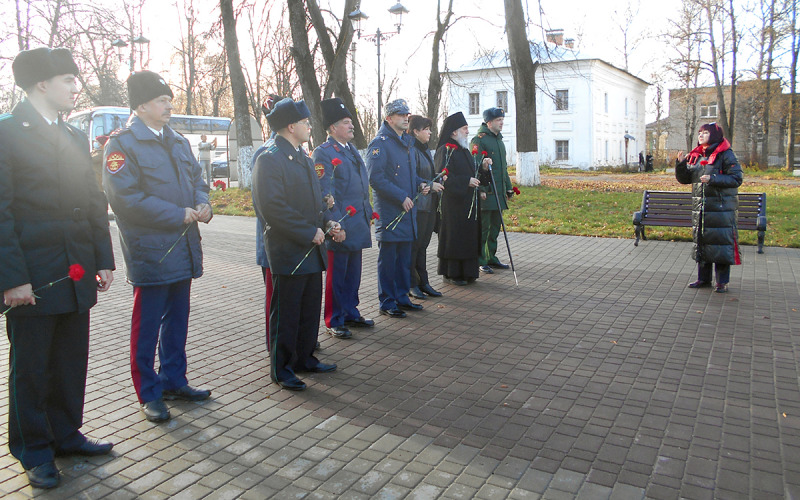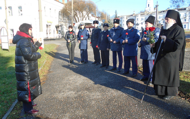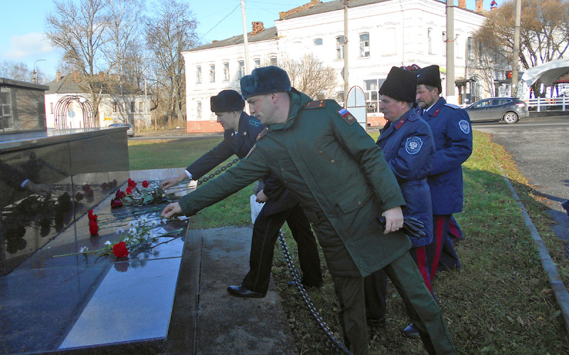 В День народного единства и праздника Казанской иконы Божьей матери состоялась церемония возложения цветов к памятным местам в честь славы и доблести наших предков. Памятная церемония - с участием главы Вяземского района Инны Васильевны Демидовой, представителей духовенства, воинских частей и казачества – началась у стелы «Город воинской славы». «Воинская слава – это то, что связывает все поколения вязьмичей, все поколения россиян и православных жителей нашей страны», - сказала перед началом церемонии заместитель председателя комитета по культуре, спорту и туризму администрации МО «Вяземский район» Элеонора Алексеевна Решетникова. Она провела небольшой экскурс в славное историческое прошлое нашего старинного города. Четвёртое ноября – ещё одна памятная дата для вязьмичей. В этот день, по новому стилю, началось Вяземское сражение Отечественной войны 1812 года, и первым в осаждённую французами Вязьму ворвался Перновский полк, ставший основной движущей силой в победном исходе сражения. К памятнику воинам-перновцам, установленному у Богородицкой церкви, легли красные гвоздики и розы. Следующим местом поклонения стал памятник «Доблестным предкам» в обновлённом сквере у Спасской башни – одном из красивейших уголков нашего города. В это же день были возложены цветы к захоронениям на Екатерининском кладбище и к Вечному Огню на площади Героя России генерал-лейтенанта М.Г. Ефремова.