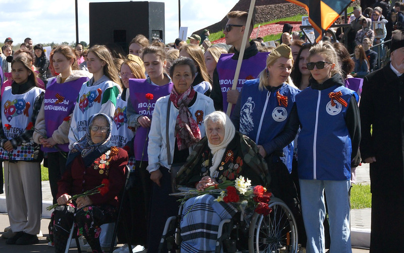 9 мая 2022 года на Кургане Славы состоялся торжественный митинг, посвященный 77-й годовщине Победы в Великой Отечественной войне. В составе праздничной колонны особое место было отведено участникам акции «Бессмертный полк». С каждым годом количество участников, принявших участие в Бессмертном полке, растет. В этом году больше 3000 горожан с портретами своих родных и близких, прошедших Великую Отечественную войну, пришли на Курган Славы почтить память о павших бойцах. Активное участие в митинге приняли волонтеры. С раннего утра 9-го мая они начали проводить городскую акцию «Георгиевская ленточка», посвященную 77-ой годовщине Победы в Великой Отечественной войне 1941 – 45 годов. Георгиевская лента – это не только многовековой символ, олицетворяющий подвиг русского воина на полях сражений. Это символ единства нашего народа, пронесшего память о самых трагических моментах в истории страны и никогда не преклонившего колени перед врагом. Митинг, посвященный Дню Победы, открыл Глава муниципального образования «город Десногорск» Смоленской области Александр Александрович Новиков, который в своем обращении к горожанам отметил, что долг каждого из нас – сделать всё для того, чтобы ветераны, прошедшие тяжкие годы войны, были спокойны за будущее своих детей, внуков и правнуков, не допустить повторения страшной войны, унесшей огромное количество человеческих жизней. Со словами поздравлений выступили: директор Смоленской атомной станции П. А. Лубенский, председатель городского совета ветеранов И.В. Журавлев, Благочинный церквей Десногорского благочиннического округа, протоиерей Храма «Всех скорбящих Радость» Десногорского благочиния Смоленской митрополии отец Виталий. В память о погибших солдатах, о тяжелых боях, о мужестве и настоящем патриотизме народа в нашем городе прошел традиционный легкоатлетический пробег Коски-Десногорск, и спортсмены, среди которых призеры и победители областных, российских и международных соревнований, приняли участие в митинге! Пятый год при поддержке профсоюза и руководства Смоленской атомной электростанции проходит велопробег работников электроэнергетического дивизиона ГосКорпорации «Росатом», посвященный Победе в Великой Отечественной войне. В общей сложности, 355 километров преодолели велосипедисты, и 9 мая закончили свой маршрут на Кургане Славы, чтобы почтить память погибших воинов и возложить цветы к могилам героев. Велосипедисты привезли в Десногорск частицы Вечного Огня из городов присутствия атомных станций и городов по маршруту следования. Перед минутой молчания прозвучала музыкальная композиция «Возвращайся», исполненная образцовым вокальным эстрадным коллективом «Колибри». Закончился митинг возложением цветов и венков к могилам погибших бойцов. Продолжил дневную праздничную программу концерт самодеятельных коллективов Центра культуры и молодёжной политики и сектора культурно-досуговой и спортивной работы первичной профсоюзной организации Смоленской атомной станции. На сцене Кургана Славы прозвучали песни в исполнении народного коллектива ансамбля казачьей песни «Вольная станица», народного коллектива ансамбля русской песни «Сударушки», вокального коллектива «Десногорочки ПЛЮС», образцового вокального эстрадного коллектива «Колибри» и Театра эстрадной песни «Ша