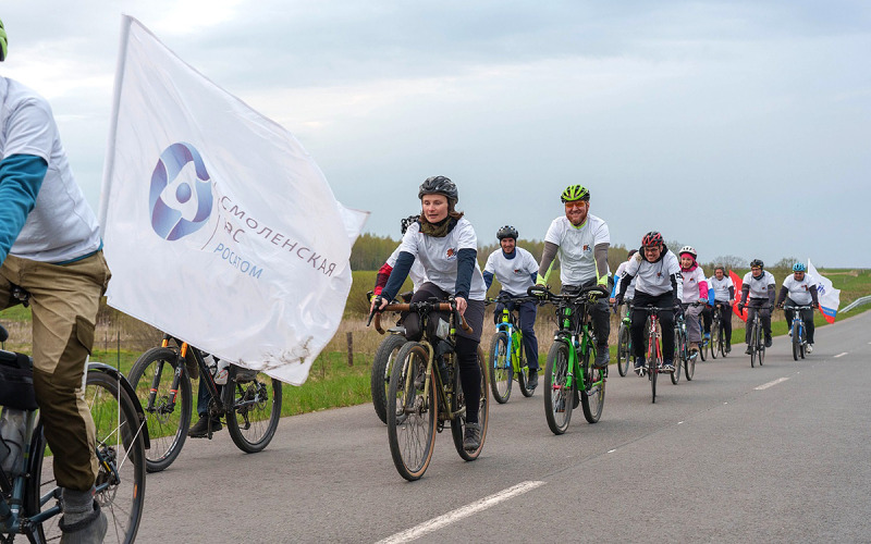 10 мая завершилась патриотическая акция в честь Великой Победы, которую в третий раз организовал Концерн «Росэнергоатом» по инициативе молодых атомщиков Смоленской АЭС. В ходе неё тридцать сотрудников электроэнергетического дивизиона Госкорпорации «Росатом» на велосипедах за неделю объехали 18 памятников воинам-освободителям в Калужской и Смоленской областях, собирая в лампады части Вечного огня. Их, а также лампады из атомных городов они доставили на Курган Славы Десногорска. Веломарафон стартовал в наукограде Обнинске, объединив представителей Ленинградской, Смоленской, Балаковской, Нововоронежской, Ростовской, Курской АЭС, филиалов АО «Атомэнергоремонт» и «Атомтехэнерго». Маршрут пролегал по местам боевой славы и ожесточенных боев через Малоярославец, Юхнов, Медынь, Барсуки, Людково, Киров, Бетлицу, Зайцеву гору. Каждая остановка – очередной памятник павшим героям, где возлагали цветы и венки, раздавали георгиевские ленточки. Над некоторыми мемориалами шефствует Концерн «Росэнергоатом». Обнинску атомщики в 2020 году подарили инсталляцию «Журавли», в Национальном парке «Угра» в 2017 году отреставрировали памятник неизвестному солдату, в Десногорске с 2019 года создается уникальный музей под открытым небом. «В этой акции я стараюсь участвовать каждый год, – говорит машинист турбинного цеха Курской АЭС Станислав Колосовский. – Мы возлагаем венки, в военно-исторических музеях впитываем информацию, вдохновляемся и потом доносим это до коллег, друзей, знакомых, чтобы вновь и вновь сделать акцент: мы не имеем права допустить забвения». Вместе с опытным велосипедистами, были и те, кто впервые преодолел сложный маршрут с холмистым ландшафтом, встречным ветром, проверкой на прочность дождем и снегом. Зато увидели заросшие деревьями окопы и воронки от разорвавшихся снарядов, работу калужских поисковых отрядов. «Нас поразило то, как все здесь пропитано историей – на Зайцевой горе, Ильинских рубежах, здесь повсюду обелиски, тысячи имен, – говорит инженер-метролог Ростовской АЭС Надежда Неволина. – На маршруте к велопробегу проявляли живой интерес местные жители, приветствовали, практически как героев». Дважды сотрудники электроэнергетического дивизиона провели для всех желающих техническое обслуживание и ремонт велосипедов, трижды присоединялись к муниципальным велопробегам, возглавляя колонны. «На наш велопробег мы позвали людей, неравнодушных к великому празднику и готовых вместе с нами пронести память о советских воинах, событиях Великой Отечественной войны, – подчеркнул руководитель велопробега от Смоленской АЭС Дмитрий Якименко. – Считаю, что цель достигли на 200%. Пообщались с юнармейцами и школьниками, показали сюжеты о патриотических акциях Концерна, увидели, что им нравится то, что мы делаем. Взяли у мемориалов частицы Вечного огня, привезли такие же частицы из своих городов, они останутся не только на Кургане Славы Десногорска, но и в наших сердцах». У каждого участника велопробега есть родные, которые боролись за мирное небо над головой, и для них тематика велопробега очень значима. У инженера ЦЦР Ростовской АЭС Александра Степикина воевали прадеды: Алексей Терентьевич Цыс – под Сталинградом, на Курской дуге, награжден орденом «Александра Невского», Иван Захарович Степикин служил на «Катюше», отмечен м