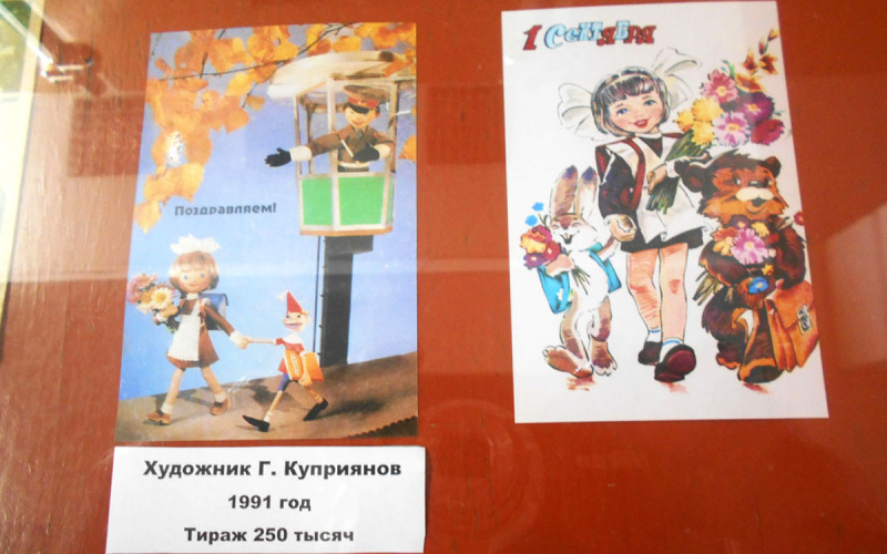 В Вяземской центральной районной библиотеке постоянно действуют выставочные стенды, рассказывающие об исторических событиях и юбилейных датах. Одну из экспозиций, посвящённую Дню знаний, подготовили вяземские краеведы. В витрине «Школьное ретро», представленной членами Вяземского клуба «Краевед», можно видеть групповые фотографии первоклассников вяземских школ уходящей советской эпохи, а также открытки, посвящённые Первому сентября, выпускаемые издательством «Союзпечать» в советское время, некоторым из которых более полувека. Поздравительные открытки символизируют первые шаги будущих школьников в Страну Знаний, их сопровождают и поздравляют друзья раннего детства – сказочные герои, мишки и зайчики. Милые рисунки на открытках, которые сегодня кажутся наивными, вызывают добрую светлую ностальгию по первому школьному дню того времени, который всегда был ярким праздником для вчерашних малышей. Экспозицию «Школьное ретро» дополняют выставки литературы из фондов Вяземской центральной районной библиотеки - «Вяземское образование: от истории к современности», познавательной и занимательной детской книжной продукции «Вся мудрость знаний для вас». Один из стендов в абонементном зале библиотеки посвящён 100-летнему юбилею советского писателя Эдуарда Асадова, стихи которого, высоко нравственные и глубоко патриотические, волновали не одно поколение любителей поэзии. В сентябре родился великий писатель земли русской Лев Николаевич Толстой. Ему также посвящён один из стендов. Соединяя историю и современность, Вяземская центральная районная библиотека старается держать своих читателей в курсе знаменательных и значимых дат нашего Отечества.