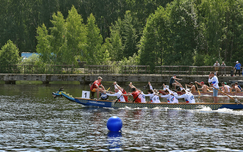 Открытый турнир по гребле на лодках «дракон» среди работников предприятий атомной энергетики и промышленности впервые состоялся в городе-спутнике Смоленской АЭС 12 июня 2022 года. В зрелищных состязаниях, организованных администрацией и профсоюзным комитетом Смоленской атомной станции, приняли участие более 60 спортсменов из Десногорска, Полярных Зорей, Заречного и Курчатова. Почетными гостями спортивного праздника стали представители Госкорпорации «Росатом», Концерна «Росэнергоатом», Федерального собрания РФ, администрации Смоленской области, Российского профсоюза работников атомной энергетики и промышленности. По традиции, гонки «драконов» проходили на Десногорском водохранилище – уникальном водоеме с чистой водой, который отвечает всем экологическим требованиям и находится под охраной и заботой Смоленской атомной станции. «Прекрасное Десногорское водохранилище еще начиная с сооружения Смоленской атомной станции всегда было местом притяжения любителей водных видов спорта. Несколько лет назад мы начали развивать здесь новую дисциплину – греблю на лодках «дракон». Новый вид спорта начал набирать популярность и сегодня многие атомные станции стали создавать свои команды по гребле на «драконах», - подчеркнул генеральный директор Концерна «Росэнергоатом» Андрей Петров. Как отметил директор Смоленской АЭС Павел Лубенский, гонки атомщиков посвящены главному государственному празднику – Дню России и значимым юбилеям – 30-летию Концерна «Росэнергоатом» и 40-летию со дня пуска первого энергоблока атомной станции. «В соревнованиях на лодках «дракон» проявляется сила, выносливость, командный дух и здоровая конкуренция. Несомненно, они послужат хорошим примером здорового образа жизни для молодёжи. Наша главная задача – показать подрастающему поколению, что занятия физкультурой и спортом, достижение высоких результатов – это залог успехов и в профессиональном плане, и в жизни», - подчеркнул Павел Лубенский. Соревнования проходили на дистанциях в 500 м и 1000 м среди мужских и смешанных команд. Первое и второе места завоевали спортсмены Смоленской АЭС, на третьем месте – команда Белоярской станции. «Новый формат соревнований по гребле на лодках «дракон», который объединил работников одной корпорации – отличный! Надеемся, что он станет традиционным и гонки «драконов» будут проходить не только на нашей площадке, но и на водных объектах других атомных городов, - отметил представитель команды «Атом» Смоленской АЭС Максим Доброходов. Всем победителям и призерам соревнований вручены кубки, медали, грамоты и призы от администрации и профсоюза Смоленской АЭС. А лучшим подарком, по мнению всех спортсменов и болельщиков, стали общение и незабываемые впечатления.