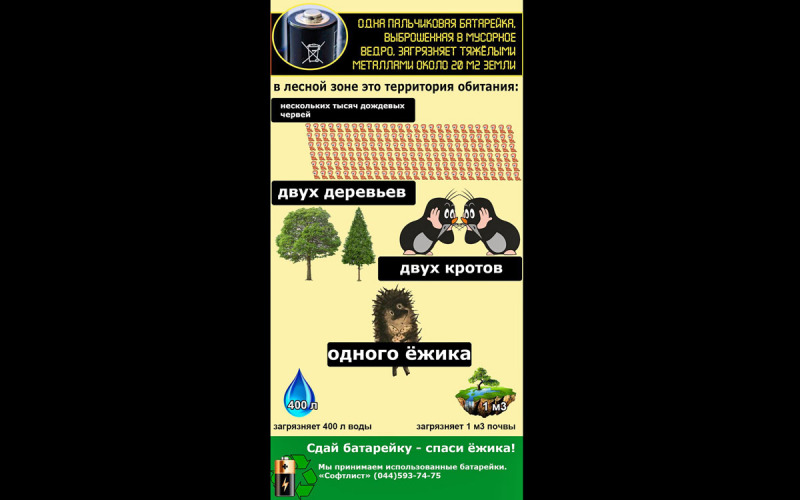 В Андрейковской школе проводится серьезная работа по экологическому воспитанию школьников. Семьи детей вовлечены в экологические проекты по сбору макулатуры, высадке цветов и деревьев, сбору батареек. Можно много говорить об охране окружающей среды, но пока сам ребёнок не поймёт, что каждую исписанную тетрадку, прочитанную газету, ненужную квитанцию выбрасывать нельзя, а нужно собирать и при этом понимать, что 100 кг макулатуры спасают одно дерево от вырубки, вряд ли дело сдвинется с мёртвой точки. Я помню, как при ежегодном опросе о самых запомнившихся мероприятиях, дети писали, что больше всего они запомнили как «спасали» деревья в рамках акции по сбору макулатуры «Спаси своё дерево». Также и с акцией «Сдай батарейку – спаси ёжика». Впервые акция прошла в 2016 году. Она носила соревновательный характер, были дети, которые сдавали до 600 батареек. Все батарейки были упакованы в пластиковые бутылки, их было не менее 30, и возник вопрос, что делать - в нашем городе их не принимали. Долгое время они хранились за пределами школы, а акция продолжалась. Потом удалось найти пункт приёма в Смоленске и переправлять наши батарейки по назначению. Всё изменилось в 2020 году, когда в рамках национального проекта «Экология» по поручению главы региона Островского А.В. стала проходить ежегодная акция по сбору отработанных источников малого тока, ключевой целью которой, является привлечение внимания подрастающего поколения к проблемам обращения с отходами производства и потребления. В этом же 2020 году Андрейковская школа вышла в число победителей и была награждена Почётной грамотой и компьютером. В нашей образовательной организации акция по сбору батареек проходит на постоянной основе. А выглядит это следующим образом: в классах стоят контейнеры, куда дети приносят использованные батарейки. Нужно отметить огромную работу классных руководителей по разъяснению необходимости сбора батареек. На протяжении всех лет самыми активными являются классные коллективы Прудниковой Елены Викторовны, Соколовой Ларисы Ивановны, Мохначёвой Любови Викторовны, Вишневецкой Галины Степановны. Но вот АБСОЛЮТНЫМ ЧЕМПИОНОМ в личном первенстве на протяжение нескольких лет является ученик 7-А класса Никифоров Егор, его семья ежегодно сдаёт не менее 25 килограммов батареек! Недавно Губернатор Смоленской области Алексеей Владимирович Островский вручил победителям и призерам акции, собравшим большее количество батареек, грамоты и сертификаты на ценные призы. По итогам соревнования наша школа заняла 3 место в регионе, собрав 180 кг батареек. Алексей Владимирович подчеркнул, что все собранные детьми источники малого тока уже вывезены региональным оператором по обращению с твердыми коммунальными отходами АО «СпецАТХ» в централизованный пункт сбора и в ближайшее время будут переданы на утилизацию в специализированное предприятие – ООО «НЭК». С милого плакатика началась работа по сбору батареек. Тут всё предельно ясно: одна батарейка загрязняет 400 литров воды, 1 куб. метр почвы, где живут черви, ёжики, кроты… Такие акции - яркий пример того, как просто внести свой небольшой личный вклад в огромное дело охраны окружающей среды.