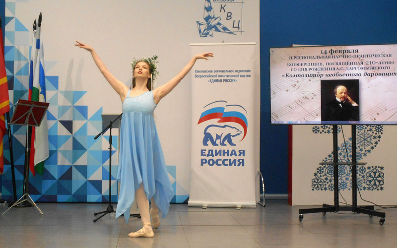 В Вяземском культурно-выставочном центре состоялась II региональная научно-практическая конференция, посвящённая 210-летию со дня рождения великого русского композитора А.С.Даргомыжского. Торжественное мероприятие было организовано и проведено Вяземской детской школой искусств им. А. С. Даргомыжского. К участникам творческого собрания обратилась директор школы Елена Александровна Новичкова: «Сегодня вся музыкальная общественность не только России, но, я думаю, и мировая, отмечает 210-летие со дня рождения нашего великого композитора. Это очень здорово, что нас всех сегодня связывает это имя. Поместье матери Даргомыжского находилось на территории Вяземского района, здесь он бывал…В этом году исполняется 70 лет, как существует наша школа…И мы встретились на Вяземской земле, через поколения, через сотни лет…Имя Даргомыжского живёт, дело его живёт…Можно проводить сколько угодно мероприятий, ставить памятников, но важно живое продолжение…Смысл в связи поколений, в продолжении традиций, смысл в том, что всё, что он создал, звучит… Дети нашей школы выступают под именем Даргомыжского на различных всероссийских и международных конкурсах в разных уголках нашей страны. И это, наверное, самое главное…Сегодня мы почтим память великого композитора рассказами о его судьбе, его творчестве, и, конечно же, будет звучать его музыка…». Для открытия мероприятия на сцену был приглашён председатель комитета по культуре, спорту и туризму администрации Вяземского района Виктор Александрович Смирнов. Он приветствовал собравшихся от имени главы Вяземского района и зачитал поздравление Смоленского областного департамента по культуре, в котором отмечено значение творчества Александра Сергеевича Даргомыжского в отечественной музыкальной культуре и важность данного мероприятия. Ведущая мероприятия Марина Александровская представляла выступающих участников научно-практической конференции. Наряду с преподавателями Вяземской детской школы искусств им. А. С. Даргомыжского с докладами и жизни и творчестве композитора выступили их коллеги из Ярцева и Сафонова. Темы выступлений были посвящены многим аспектам жизнедеятельности А. С. Даргомыжского, в том числе обзору его фортепианного творчества, новаторским тенденциям в оперном искусстве, месту его творчества в русской музыкальной классике и влиянии на русскую музыкальную культуру. Живыми иллюстрациями к докладам стали выступления преподавателей и юных концертмейстеров Вяземской детской школы искусств. Прозвучали фортепианные произведения Даргомыжского, романсы в исполнении солистки Дарьи Игоревны Светловой, вокального дуэта Оксаны Сергеевны Балашовой и Светланы Валерьевны Панченко, скрипичный дуэт Светланы Ивановны Никифоровой и Ольги Николаевны Яковлевой… «Танец русалки» из самой известной оперы Даргомыжского по поэме А. С. Пушкина исполнила Ирина Вячеславовна Гудемарова. В зале были представлены рисунки учащихся Вяземской детской художественной школы им. А. Г. Сергеева с художественными фантазиями по мотивам оперы Даргомыжского «Русалка». Александр Сергеевич Даргомыжский стал достойным приемником родоначальника русской классической музыки Михаила Ивановича Глинки и непревзойдённым представителем критического реализма в музыке, воплотившим социальное неравенств