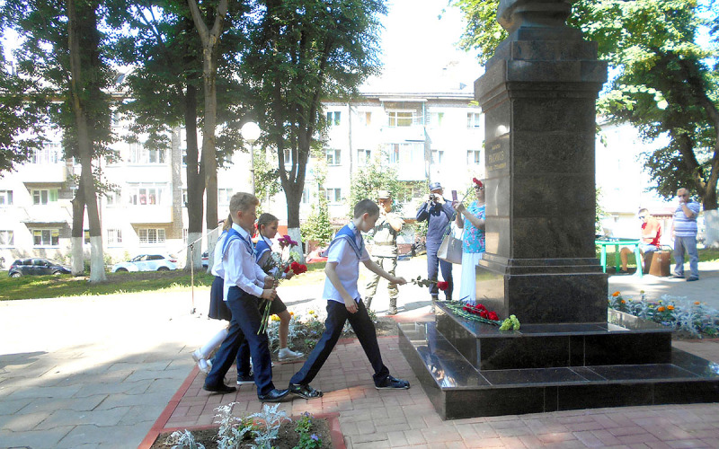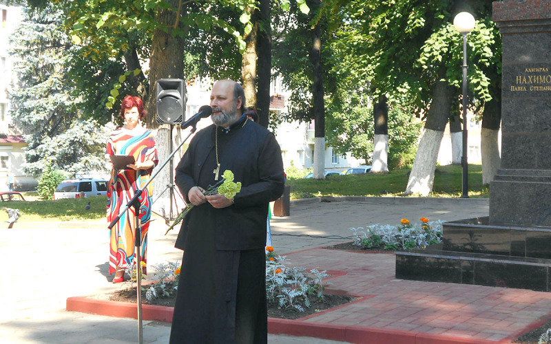 В начале июля 1802 года в сельце Городок Вяземского уезда Смоленской губернии в семье отставного офицера родился мальчик, который впоследствии стал гордостью Российского Флота. В честь 220-летия со дня рождения прославленного адмирала Павла Степановича Нахимова в сквере его имени состоялся памятный митинг. Открыло торжественное мероприятие выступление учащихся средней школы №9, которая с гордостью носит имя Нахимова. Ребята предстали в матросской форме и рассказали в стихах о вехах героического пути прославленного флотоводца. «Дорогие вязьмичи, я рада приветствовать всех, кто посчитал своим долгом придти сегодня сюда в день рождения нашего выдающегося земляка Павла Степановича Нахимова, - обратилась к участникам торжественного события глава Вяземского района Инна Васильевна Демидова, - без преувеличения можно сказать, что каждый житель Вяземского района гордится, что на нашей вяземской земле родился такой герой - выдающийся флотоводец адмирал. Детство и юность прошли именно в Вяземском районе, в это время формируются основные черты характера, любовь к родине… Имя Нахимова увековечено во многих высших морских учебных заведениях, его имя носят площади, корабли, улицы… И в нашем городе средняя школа №9 носит имя Павла Степановича Нахимова и этот парк, где мы сегодня стоим… И я уверена, что имя Нахимова останется в веках, на таких примерах мы должны воспитываться сами и воспитывать нашу молодёжь…» Инна Васильевна привела одно из изречений Павла Степановича Нахимова, которое говорит о нём как о человеке слова и чести: «Береги язык, на котором говоришь, каюту, в которой живёшь, и мундир, который носишь». С днём рождения великого нашего земляка поздравил всех секретарь Вяземской епархии протоирей Олег Переверзев. «Великий человек, - отметил он, - это тот, кто живёт не для себя, а для своего народа, своего Отечества… Великий пример - жизнь Павла Степановича Нахимова и его кончина, ведь он отдал жизнь за своих друзей, за своих соотечественников… С праздником вас! За нами – Россия! С нами Бог!». С замечательным событием поздравила участников митинга директор Государственного историко-культурного и природного музея-заповедника А.С. Грибоедова «Хмелита» Надежда Викторовна Кулакова: «С праздником вас! Сегодня действительно мы отмечаем замечательную дату – 220 лет гордости России, гордости нашей Смоленской земли, гордости Вяземского района и, конечно же, нашего музея. Только что мы провели уже двадцатый Нахимовский праздник. Величали нашего Павла Степановича Нахимова, человека большой души, сильного духа, который всю свою жизнь отдал служению своей стране, своему народу… Будем всегда помнить и чтить». Надежда Викторовна пригласила всех в Хмелиту, посетить новые выставки, посвящённые Российскому Флоту и 220-летию П.С. Нахимова, а также 350-летию Петра Первого. Участники торжественного митинга возложили цветы к памятнику Павлу Степановичу Нахимову и сфотографировались на память об этом празднике.