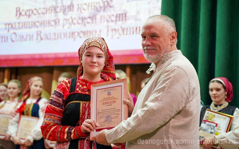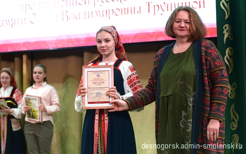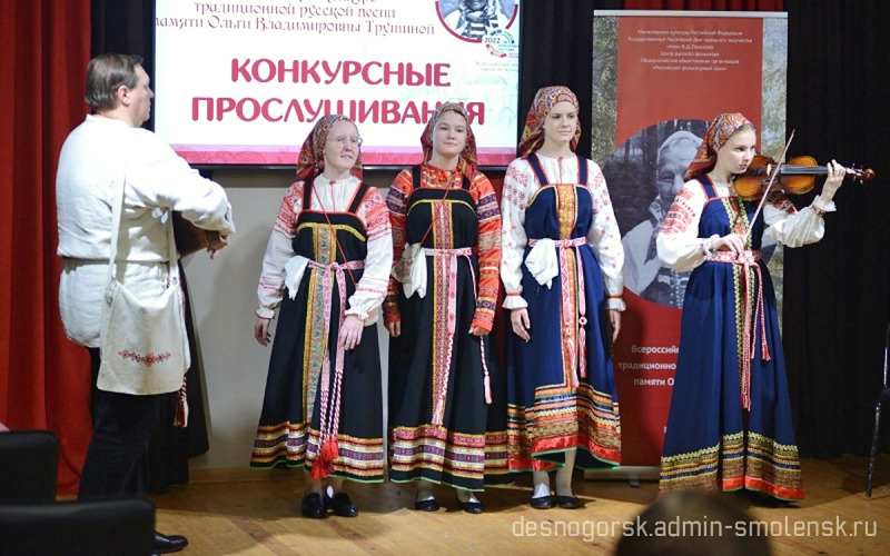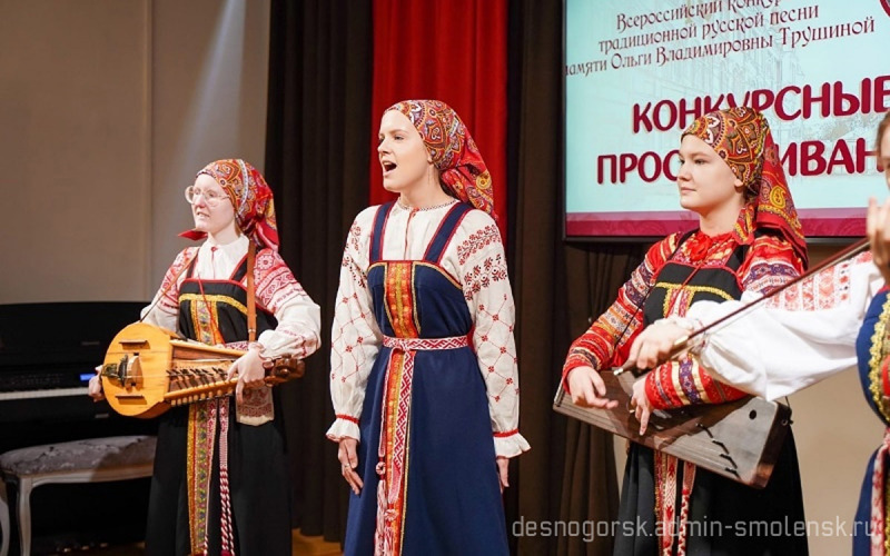 В рамках Декады народной песни Года культурного наследия народов России, участницы ансамбля "Историческая музыка Смоленщины" под руководством Владимира Платонова прошли отборочный тур и приняли участие в IV Всероссийском Конкурсе традиционной русской песни имени выдающейся народной певицы Ольги Владимировны Трушиной. Учредители и организаторы конкурса — Министерство культуры РФ, Центр русского фольклора Государственного Российского Дома народного творчества имени В.Д. Поленова, Смоленский областной центр народного творчества, Общероссийская общественная организация «Российский фольклорный союз». Каждый год Конкурс проводится в разных городах России. В номинации вокальное творчество соло наш город представили Елизавета Соколова и Елизавета Платонова, в номинации вокальное творчество трио выступили Елизавета Соколова, Ксения Павловская и Василиса Ляхова. В мероприятии приняли участие более 35 участников из 12 регионов России. Солисты-исполнители, дуэты и трио из Белгородской, Вологодской, Иркутской, Калужской, Липецкой, Московской, Ростовской, Саратовской, Свердловской, Смоленской, Тверской, Тульской областей, Алтайского края, Республики Коми и Москвы. Конкурсные прослушивания, прошедшие в Смоленском областном центре народного творчества, оценивало высококвалифицированное жюри: С.Ю. Власова — доцент кафедры этномузыкологии Российской академии музыки имени Гнесиных, художественный руководитель Фольклорного ансамбля РАМ им. Гнесиных. Е.А. Дорохова — заместитель руководителя Центра русского фольклора ГРДНТ им. В.Д. Поленова, кандидат искусствоведения, старший научный сотрудник Фонограммархива ИРЛИ (Пушкинский дом) РАН. Г.В. Лобкова — научный руководитель Фольклорно-этнографического центра имени А.М. Мехнецова Санкт-Петербургской государственной консерватории имени Н.А. Римского-Корсакова, заведующая кафедрой этномузыкологии, доцент, кандидат искусствоведения. С.Н. Старостин — заведующий сектором актуализации традиционной народной культуры Центра русского фольклора ГРДНТ им. В.Д. Поленова, председатель Правления Российского фольклорного союза. Н.В. Сербина — этномузыколог, кандидат искусствоведения, исполнительница песен и псальм на колёсной лире. О.А. Ключникова — заместитель руководителя Центра русского фольклора ГРДНТ им. В.Д. Поленова, заместитель Председателя правления Российского фольклорного союза. Председатель жюри: Д.В. Морозов — руководитель Центра русского фольклора ГРДНТ им. В.Д. Поленова, заместитель председателя Правления Российского фольклорного союза, художественный руководитель Московского народного хора. В рамках конкурса прошел круглый стол по вопросам сольного исполнения народных песен в русской традиционной культуре и мастер-класс Н.В. Сербиной по сольному исполнительству. По итогам конкурса наше трио Елизавета Соколова, Василиса Ляхова и Ксения Павловская награждены Дипломом 2 степени. Наши солисты Елизавета Платонова и Елизавета Соколова награждены дипломами участников конкурса. Специальным дипломом за сценическое воплощение музыкального фольклора Смоленской области был награжден Платонов Владимир Юрьевич и ансамбль "Историческая музыка Смоленщины". Участники ансамбля были приглашены выступить в концертном зале им. М.И. Глинки Смоленской областной филармонии на 