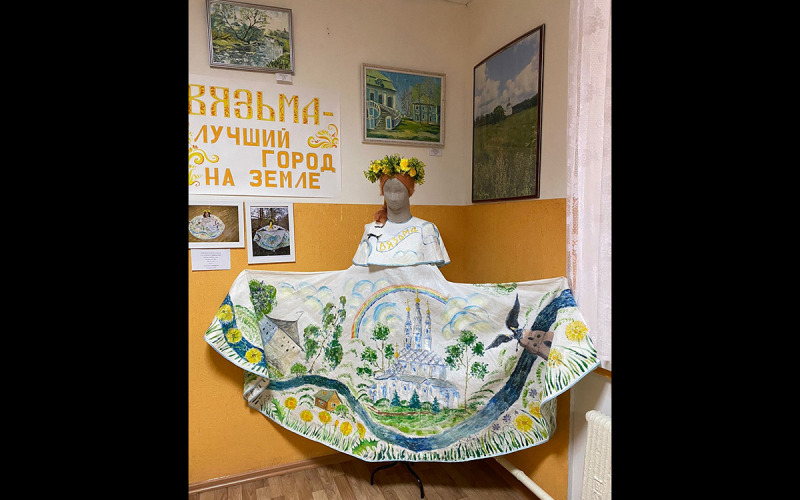 В 2024 году наш славный город Вязьма отмечает свой 785 – летний юбилей. В связи с этим в Литературном салоне организована фотозона «Вязьма – лучший город на земле», где представлена эксклюзивная ручная (дипломная) работа Полины Байдаковой, обучающейся Вяземской художественной школы им. А.Г.Сергеева, под руководством талантливого педагога Ольги Владимировны Трунаевой. Работа представлена костюмом «Вязьма» в форме льняного сарафана с нарисованными акрилом изображениями достопримечательностей нашего города и района: Спасской башни, церкви Смоленской иконы Божией Матери Одигитрии, памятника с орлами, музея - заповедника "Хмелита", пейзажей вяземской земли. Эта необыкновенная работа недавно побывала в Москве, на ВДНХ, где её могли увидеть посетители площадки Вяземского района во время проведения Дней отраслевых достижений России. А еще фотозона дополнена живописными работами - картинами О.В.Трунаевой с видами нашей Вязьмы. Дорогие друзья! Мы поздравляем всех с наступившим юбилейным годом и приглашаем вас сделать на память фотографию в нашей фотозоне. Это будет ваше необыкновенное историческое фото на память о 785-летнем юбилее любимого города! Как театр начинается с вешалки, так наш Литературный салон начинается с фотозоны «Вязьма – лучший город на земле».