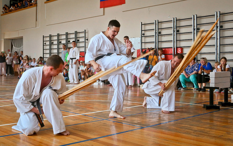 Юные воспитанники секции восточного единоборства киокусинкай каратэ Десногорска отпраздновали новоселье. Благодаря помощи и поддержке концерна «Росэнергоатом», руководства и профсоюза Смоленской АЭС у них появился специализированный зал для занятий. Он находится на цокольном этаже дома №18 4 микрорайона. 22 июля состоялось торжественное открытие нового бойцовского клуба. Киокусинкай (синкёкусинкай) – один из самых трудных стилей карате, основанный в 50-е годы Масутацу Оямой. В Десногорске этим видом восточного единоборства занимались многие бойцы в 80 и 90-х годах, в их числе – директор Смоленской АЭС Павел Лубенский, который является ветераном российского киокусинкай. С 2019 года по инициативе руководства и профсоюза атомной станции карате получило новый виток развития. «Направление киокусинкай занимает серьезные позиции в семье единоборств в России. И очень здорово, что в нашем городе появились энтузиасты, которые популяризируют этот вид спорта. Да, он жесткий, но очень интересный и полезный, а значит нужный. Школа кийкуши дает серьезный задел для дальнейшей жизни: учит уважению, умению держать удар и терпеть боль, постоять за себя, свою семью», - подчеркнул директор Смоленской АЭС Павел Лубенский. Занятия в секции ведет выпускник школы каратэ «Федерации Киокусинкай Воронежской области», победитель и призер межрегиональных турниров и Первенства ЦФО, обладатель черного пояса Данила Степанюк. Под его руководством тренируются более 50 детей в возрасте от 5 лет. До недавнего времени юные каратисты занимались на базе реабилитационно-оздоровительного и досугового центра Смоленской АЭС. Чтобы обеспечить полноценный тренировочный процесс клубу выделили и отремонтировали просторное помещение. Спортивный зал оборудован специальными тренажерами для развития координации и силы каратистов, отработки ударов руками и ногами, закуплен инвентарь для занятий, разработанный по новым технологиям. «Концерн «Росэнергоатом», как социально ориентированная организация, направляет достаточно большие средства на развитие спортивной инфраструктуры в атомных городах, укрепление здоровья не только наших работников, но и детей, - подчеркнул директор департамента кадровой работы Росэнергоатома Сергей Гудин. – Десногорск – четвертый город-спутник АЭС, где развивается каратэ. Открытие специализированного зала для тренировок поможет привлечь к этому виду спорта больше молодежи, которая будет укреплять дух и силу, одерживать победы на различных соревнованиях». Замечательным подарком на новоселье для юных каратистов стали показательные выступления профессиональных спортсменов из Нововоронежа. Десногорские ребята также показали мастерам свои навыки владения техникой киокусинкай.