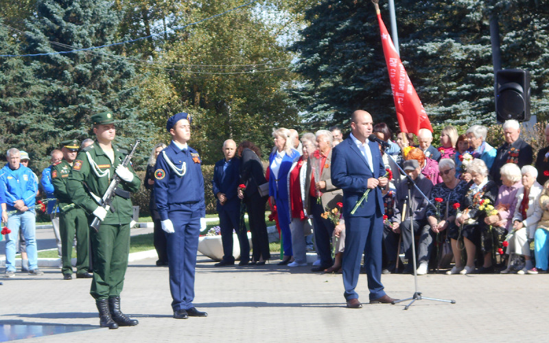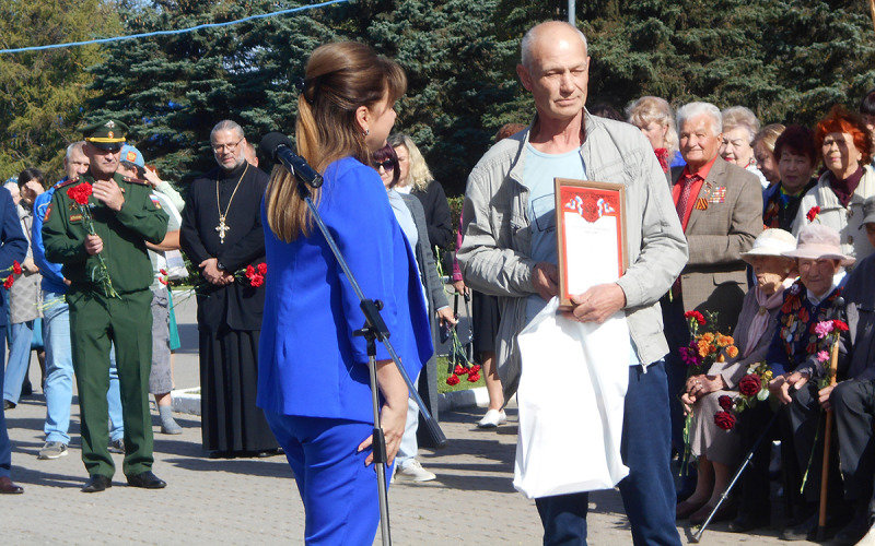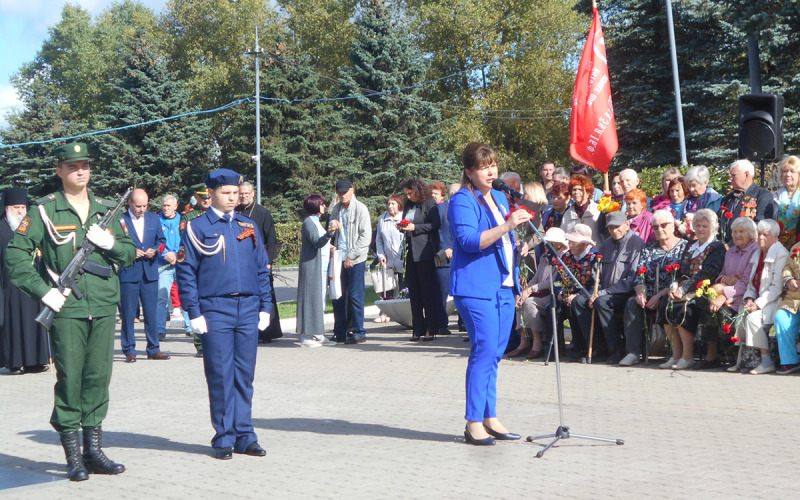 25 сентября – в день 80-ой годовщины освобождения Смоленщины от немецко-фашистских захватчиков у Вечного Огня на площади Ефремова состоялся митинг. На торжественном памятном мероприятии присутствовали: глава Вяземского района Инна Васильевна Демидова, епископ Вяземский и Гагаринский Сергий, депутат Смоленской областной думы Илья Александрович Степаненков, военный комиссар города Вязьмы Вяземского и Угранского районов Сергей Владимирович Егоров, ветераны Великой Отечественной войны, воины Вяземского гарнизона, представители патриотических общественных организаций, молодёжных движений. Над площадью Ефремова зазвучала песня из кинофильма «Белорусский вокзал»: «…Нас ждёт огонь смертельный, и всё ж бессилен он…»... Участники митинга застыли под исполнение гимна России… Так открылся митинг, посвящённый знаменательной дате Смоленщины, которая восемьдесят лет назад была освобождена от фашистского ига. «Горькую ничем невосполнимую утрату понесла Смоленщина в результате зверств фашистских палачей. На территории области было сожжено вместе с людьми 200 деревень, расстреляно и замучено более 350 тысяч человек. Бои на Смоленщине запомнились как одно сплошное сражение. Народ и армия совершили великий подвиг. Не было на Смоленщине ни одного клочка земли, где бы ни стоял до последнего патрона, до последнего дыхания русский солдат». «Дорогие наши ветераны, уважаемые вязьмичи, наши военнослужащие, - обратилась к участникам митинга глава Вяземского района Инна Васильевна Демидова,- от всей души хочу поздравить всех с 80-ой годовщиной со дня освобождения Смоленщины. 25 сентября – это особенный день для каждого из нас, он наполнен памятью, гордостью за наших фронтовиков, подпольщиков, партизан, за всех тех, кто подарил нам свободу и независимость… Наша малая родина высочайшей ценой обрела освобождение, и наш святой долг – помнить об этом… Сейчас в нашем районе проходит Вахта Памяти. В Панфилово было открытие, на котором я присутствовала, приехало 37 поисковых отрядов. Я была свидетелем очень трогательной передачи останков бойца, медальон которого нашли поисковики – Исаева Александра Васильевича из далёкого Альметьевского района Татарстана. На передачу останков приехала его дочь и два правнука… В этот момент начинаешь понимать, что это нужно не только мёртвым, это нужно всем живым… Память внутри каждого из нас, и она должна сохраняться и передаваться поколениям… Сегодня наши военнослужащие на Украине, как их деды и прадеды, воюют за историческую правду, за то, чтобы неонацизм и фашизм не возрождались. Каждый из нас стоящих на этой святой площади больше всего хочет, чтобы быстрее они возвратились живыми, здоровыми, и с победой… Сегодня праздничный день, и я желаю вам, уважаемые вязьмичи, прежде всего, здоровья, я желаю вам всем мирного неба над головой… Желаю вам, дорогие ветераны, чтобы каждый ваш день был наполнен любовью, вниманием и поддержкой ваших близких. Спасибо вам, дорогие, за всё, что вы для нас сделали, низкий вам поклон». Инна Васильевна вручила благодарственное письмо бойцу добровольческого отряда «Барс-17» Щербакову Виктору Викторовичу – «за добросовестное исполнение служебного и воинского долга, высокий профессионализм, оперативность при выполнении боевых задач в специальной военной операции на Украине». В этот