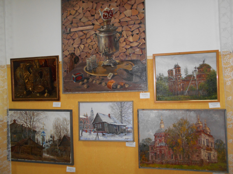 Персональная выставка картин юхновского живописца члена Союза художников России Виктора Красильникова открыта в Литературном салоне, с которым художника связывает долгая творческая дружба. Каждое живописное полотно – это рассказ об уголках русской земли, деревенском быте, жизни патриархальной провинции. Впервые Виктор Красильников принял участие в пленэре, проходившем в нашем городе в 2011 году. Он был восхищён гостеприимством вязьмичей и с тех пор стал частым гостем Литературного салона, участником многих праздников, вечеров, выставок, его реалистичные пейзажи и натюрморты постоянно украшали стены этого творческого дома. Для четвероклассников вяземских школ Виктор Красильников провёл незабываемый мастер-класс. На глазах у детей рождалось живописное полотно – пейзаж, запечатлённый в памяти художника. Он подробно объяснял каждый этап творчества на доступном детскому восприятию языке и вызвал интерес и симпатии маленьких вязьмичей к себе и изобразительному искусству. Столичный житель Виктор Красильников переехал в деревню под Юхновом с красивым поэтическим названием Натальинка, где обрёл простор для своего творчества и открыл новые горизонты для вдохновения. Сегодня он представляет в Литературном салоне выставку своих картин, названную «Память о прошлом и настоящем». Каждое полотно – это рассказ об уголках провинциальной России с неброской природой, храмами, в основном сельскими, в окружении деревянных домишек. В запечатлённом взгляде художника глубокая любовь к родной земле, тёплое чувство патриотизма и боль за утрачиваемое, которая звучит даже в названиях картин: «Заброшенный», «Храмы восстают. Г. Калуга», «Весна в Козельске. Приговорённый» - в этом названии участь не человека, а старинного дома с каменной нижней частью и деревянным верхом. О многом говорят и натюрморты Виктора Красильникова, в них нет ни одного незначимого предмета. Глядя на картину «Калужская невеста» , на которой распахнутый сундук с приданым, можно ясно представить себе облик красавицы на выданье. «Самовар у дровника» - картина на которой изображён самовар на фоне дровяной кладки, старинные подстаканники, сапог для раздувания, железная коробочка с заваркой – живописная картина чаепития деревенского жителя. Не менее впечатляет и натюрморт о нашей действительности – кучка мухоморов на газете «Правда» со статьёй о коррупции. Картины Виктора Красильникова не могут оставить зрителя равнодушным. В них столько жизненной правды, искренности и мастерства живописца! Каждое полотно, передающее внимательный пытливый взгляд художника, словно смотрит вам в душу, трогая самые тонкие её струны. Работа выставки продлится до конца января следующего года. Познакомьтесь с ней. Не пожалеете.