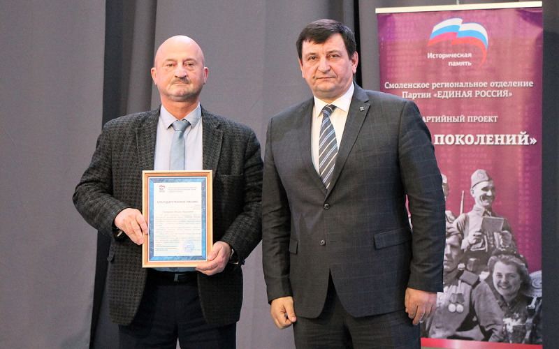 23 ноября 2022 годе в Смоленске проведено награждение тех, кто помогает собирать гуманитарные грузы в зону СВО. В культурно-выставочном Центре им. Тенишевых из рук секретаря регионального политсовета "Единой России" Ляхова Игоря Васильевича Благодарственные письма от имени Смоленского регионального отделения партии за активное участие в общем деле и неравнодушие были вручены: - Лосенко Михаилу Васильевичу, депутату Смоленского областного Совета, руководителю АО «Атомтранс» (письмо за руководителя получил представитель организации, руководитель Фракции «Единая Россия» Григорович Игорь Михайлович); - Крючкову Сергею Александровичу, директору филиала «Смоленскатомэнергоремонт» (письмо получил представитель организации Алхимов Вячеслав Владимирович); - Тюрину Алексею Вячеславовичу, руководителю ООО «Строительная компания». Также отмечены за бесценную помощь: - Галкова Ольга Петровна, предприниматель, - Ошева Алевтина Владимировна, предприниматель, - Давыдов Михаил Викторович, предприниматель, руководитель студии «Акварель» Им Благодарственные письма от имени Смоленского регионального отделения партии «Единая Россия» будут вручены секретарем Десногорского местного отделения Новиковым Александром Александровичем. Мы гордимся нашими десногорцами и благодарим за бесценный вклад в поддержку и помощь нашим защитникам!